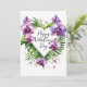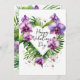 Celebrate a love as unique and beautiful as a rare flower with this stunning Purple Orchid Valentine's Day flat card. The design features a lush, artistic arrangement of vibrant violet and lilac Phalaenopsis orchids mixed with deep green tropical monstera and palm leaves. The front displays a romantic "Happy Valentine's Day" message framed by a delicate gold and floral heart.