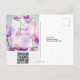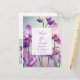 Orchids provide an ornamental backdrop for these purple orchids floral wedding save the date postcards. Great for special occasions. Add your favourite photo on the back. The back also has a QR code that you can use for a wedding website, wedding registry, RSVP, and more. The template also includes the recipient's name and address to have it printed directly on the postcard (or opt for another option). Use to complement floral wedding event themes, including tropical themes. Use the template to personalise.