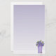 Stationery design featuring a graduated transparent purple background with lines for hand-written notes & letters. A lovely arranged bouquet of pansies sits in the bottom corner.