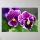 Two brilliant purple pansies against a green background. The original is a miniature oil painting by Kathie Miller