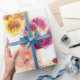 Pretty purple pansy pattern print wrapping paper featuring my pretty pattern of purple and yellow pansy flowers. A great way to brighten the day.