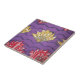 This decorative art print showcases a striking piece of Abstract African Art. The design, titled "Purple Passion Waves," features an intricate pattern of yellow and red fan-like motifs set against a rich purple background with dynamic wavy lines. This piece is perfect for those seeking modern African decor, a vibrant ethnic print, or a geometric art design with a cultural flair.