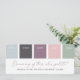 Get your colour palette swatch cards to help with planning and coordinating your wedding details, decorations, and stationery. Give them out to the wedding party, bridesmaids, or wedding planner!