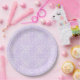 Spring purple patterned paper plates. Design can be transferred to matching paper napkins.