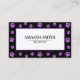 Purple Paw Prints Black Dog Groomer Business Card features a black front with purple paw print design and fully customizable text.