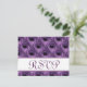 This design with its purple peacock feathers is an elegant way to handle your RSVP needs. You can also experiment with different papers to get just the look you want. This invitation is currently featured on a recycled paper. Enjoy your special day! Are you having a purple wedding?