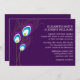 Elegant and classic invitation features a beautiful vector illustration of peacock feathers on a deep purple background. Perfect for weddings, bridal showers, birthday parties, sweet sixteen parties and more!