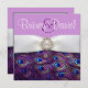 Purple Peacock Wedding Invitations---match the RSVP cards found below on this page. Each invite features a an elegant printed feather design on the bottom half of the front with a satin ribbon as a divider. The ribbon. The satin ribbon has a silver buckle that's covered in tiny rhinestones. Each invitation comes with a white envelope. Note: this is printed artwork. It does not have real ribbon or jewels. Invitations would be significant in price otherwise and Zazzle does not offer them at this time.