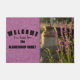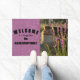 The entryway mat feature a photograph of purple Penstemon flowers on the right and template text on the left. Personalise, remove or edit the text using the design tool to select a font style, size, and colour you prefer. Photograph by Patricia AZ Phillips.