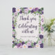 Thank your guests in style with this elegant “Thank You for Celebrating with Us” sign, designed to add a beautiful finishing touch to your event. Featuring a soft watercolor floral border in shades of lavender, plum, and fresh greenery, this design creates a romantic garden-inspired feel that complements weddings, bridal showers, milestone birthdays, and special celebrations. The graceful script lettering paired with classic serif accents ensures the message is both warm and easy to read. The added “Please Take One” line makes it perfect for guest favor tables, encouraging guests to enjoy a thoughtful takeaway. Printed on a smooth 12.5 pt paper sheet, this sign is lightweight yet polished—ideal for framing or displaying on a tabletop or easel. A lovely coordinating piece for floral-themed event décor.