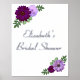 Elegant bridal shower design with flowers in shades of purple with eucalyptus and botanical greenery