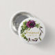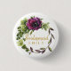 Create buttons for your bridesmaids with this beautiful watercolor floral wreath design in shades of plum purple and green with one lush open peony. Use the provided template to add headings and names in gold. Search ID456 to see other products with this design.