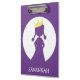 Purple Personalised Princess Silhouette Fairy Tale Clipboard for little girls. Purple silhouette princess wearing gold crown on front and back of this personalised clipboard. Purple background, name in white text. Little girls will love organising their homework with personalised princess themed school supplies. Fairy tale home decor and school supplies.