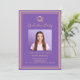 A purple, lavender background, decorated with a golden frame, and a faux gold graduation cap. Personalise and add a photo name and details.