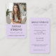 Professional business card designed with a rich purple color palette for a polished, modern presentation. The layout includes space for a photo to create a personal, professional look while keeping the design clean and easy to read. Suitable for professionals, creatives, small business owners, and service providers. Fully customizable text and photo placement with a print-ready layout.