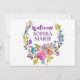 This purple pink and blue flower photo birth announcement card is the perfect floral baby announcement. The design features bright watercolor flowers in magenta pink, plum purple and cornflower blue, and a lovely ultra violet bold script font. Personalise the front with the baby's full name and birth stats. Personalise the floral wreath backing with the baby's name.