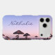 A purple blue and pink sunset on a Southern California beach with thatched palapas oozes relaxation and reflection. Travel back to your vacation beach days whenever you use this stunning, beautiful photography personalised name cell phone case. Makes a great gift for someone special!