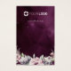 Painted watercolor botanical floral and greenery in dusty pink, burgundy and grey colour, on moody purple background, with custom logo, contact information and social media tag, chic and stylish, great custom earring cards with logo.