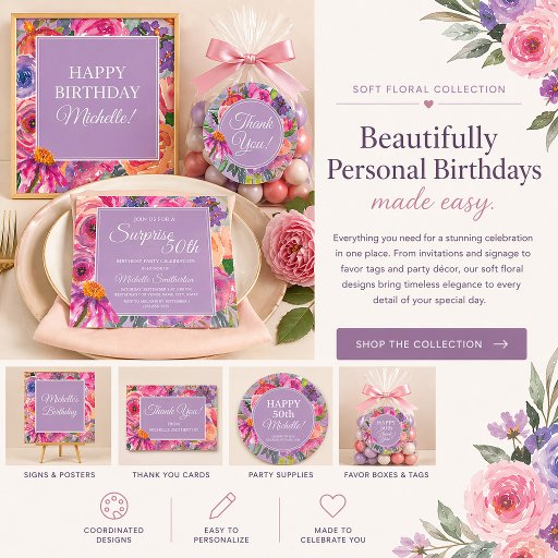 Purple Pink Watercolor Wildflower Garden Birthday Designed by Theresa Suttles