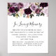 A wedding memorial sign that can be placed on a table display. It features a deep purple and mauve pink roses, a memorial sentiment and then a list of those to be remembered.