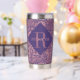 Purple Pink Floral William Morris Elegant Monogram Insulated Tumbler