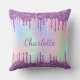 A trendy rainbow coloured, holographic background with unicorn and rainbow pastel colours in pink, purple, rose gold, mint green. Decorated with faux glitter drips in purple and pink. Personalise and add a name and monogram initials. The name is written with a modern hand lettered style script. Purple and pink coloured letters.