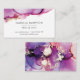 A gorgeous business card featuring purple, pink and gold watercolor alcohol inks, suitable for any creative profession. Beautiful matching back page.