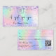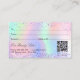 A trendy holographic background with unicorn colours and rainbow colours in pink, purple, mint green. Decorated with confetti. Personalise and add your business logo, name on front