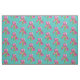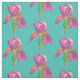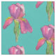 A pretty floral fabric decorated with a pretty pink and purple iris flower drawn in black ink and painted with watercolor in several shades of pink and purple with olive green for the stem on a turquoise green background. You can change the background colour to fit your needs.
