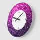 Purple Pink Ombre glitter sparkles with numbers Large Clock
