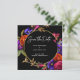Elegant and bold modern floral contains purple, orange and pink flowers on a black background. This bold botanical surrounds a round gold frame. Your save the date details are in bright white. The back of the save the date features LOVE written in decorative letters and embellished with flowers. This save the date card is part of the Midnight Save the Date Collection. Feel free to message me if you need help finding matching items.