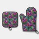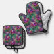 Purple Pink Peacock Floral Oven Mitt & Pot Holder Set