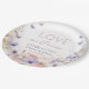 Personalize these beautiful love in bloom bridal shower paper plates with your own wording easily and quickly, simply press the Edit Using Design Tool button to further re-arrange and format the style and placement of the text. Featuring exquisite delicate wildflower in soft pastel hues of blush, pink and purple and fluttering butterflies. All text is editable. For a seamless and coordinated look, explore our range of matching items available in-store. (c) The Happy Cat Studio