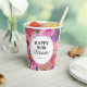 Add a personal touch to her milestone celebration with this floral 90th birthday paper cup featuring bold watercolor flowers and a custom photo on the back. The front showcases the guest of honour’s name, age, and party date framed in a modern oval design, while the back displays a cherished photo for a truly meaningful detail. Perfect for birthdays, brunches, or afternoon tea parties, these personalised cups make serving drinks both stylish and sentimental. Coordinates beautifully with the full pink and purple floral party collection.