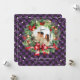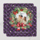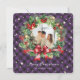 Elegant purple photo Christmas card featuring a photo surrounded by a watercolor wreath of berries, holly, pine cones and conifer tree branches. Easily personalise this classic photo holiday card with your photo, family name and text.