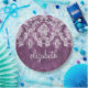 Purple Plum Grunge Damask Pattern with Name Paper Plate