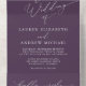 Beautiful purple plum minimalist wedding invitation. Fully customisable with names, dates, location and colours to match your wedding theme.