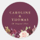 purple plum & peach floral wedding classic round sticker