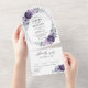 Purple Plum Silver Floral Blooms Geometric Wedding All In One Invitation