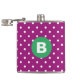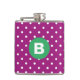Purple Polka Dot Pattern Green Monogram Hip Flask