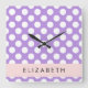 Purple Polka Dots, Polka Dot Pattern, Your Name Square Wall Clock