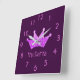 Purple princess tiara pink stars girl name square wall clock
