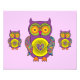 Poster that features a cute cartoon psychedelic owl in purple, lime green and rainbow colours.