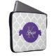 Protect your laptop with a Purple Quatrefoil Personalised Laptop Sleeve. Laptop sleeve design features a simple quatrefoil background and fancy emblem to personalise with your name and monogram. Additional items available with this design as well. Please contact me directly for assistance with personalisation.