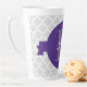 Enjoy your latte or morning coffee with a Purple Quatrefoil Personalised Latte Mug. Mug design features a simple quatrefoil background and fancy emblem to personalise with your name and monogram. Additional gift items available with this design as well as a variety of colours.