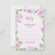 These wedding reply cards feature purple ranunculus flowers. They are part of a collection which includes matching wedding stationery and gifts. Please visit the collection pages in our store to see the full range of wedding and bridal products that you can personalise for your wedding.