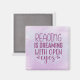 The magnet also features a powerful message that will inspire and motivate you every time you see it. In bold purple lettering, the phrase "Reading is dreaming with open eyes" is written, serving as a reminder to stay curious and imaginative throughout your day.