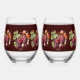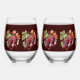 Purple Red Grapes Vines Burgundy Background Stemless Wine Glass