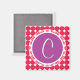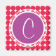 Red dots in close quarters create a secondary pattern of white stars. A large purple circle is surrounded by white lines, while a single white initial graces the centre.