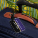 Easily distinguish your luggage with one of these purple, black, and gold luggage tags. Use the EZ template to personalise with your own name and address.